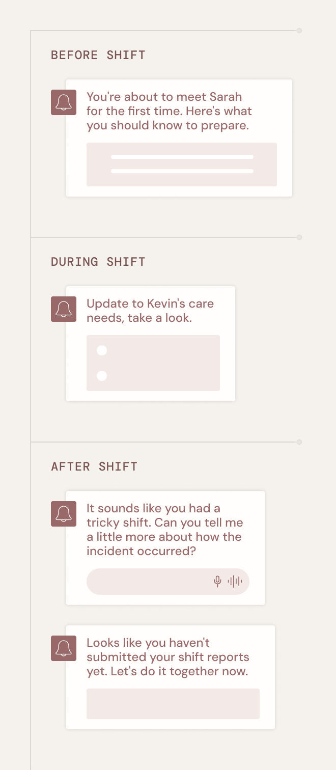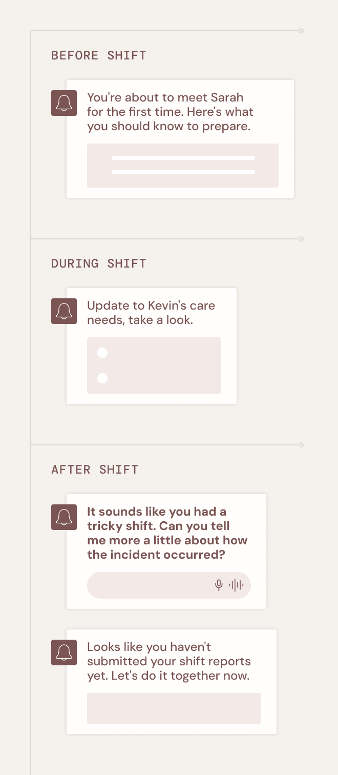 Notes and reports on every shift, guaranteed. Care managers go from checking whether documentation happened to acting on what it tells them.