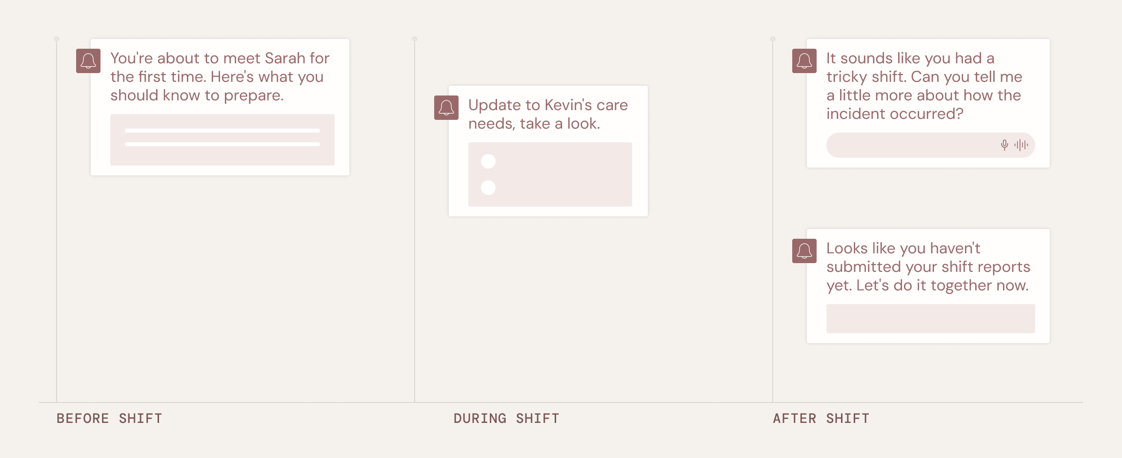 Guided support before, during and after shift.